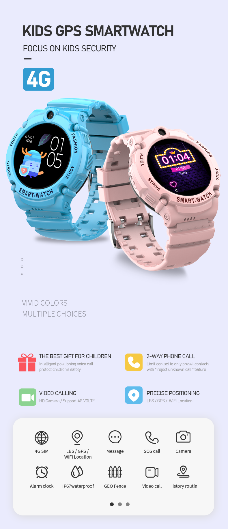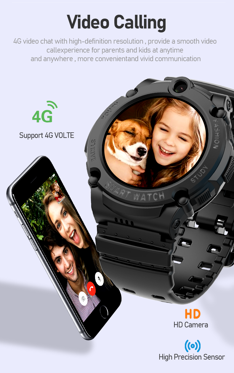 Android 8.1 OS, 4G smart watch, Kids GPS SOS watch, GPS/WiFi/LBS accurate positioning, Geofence, sos button..