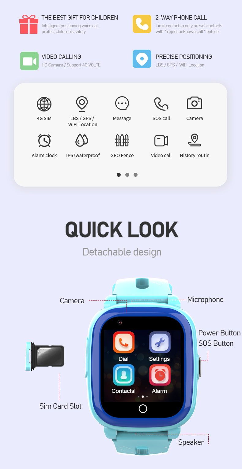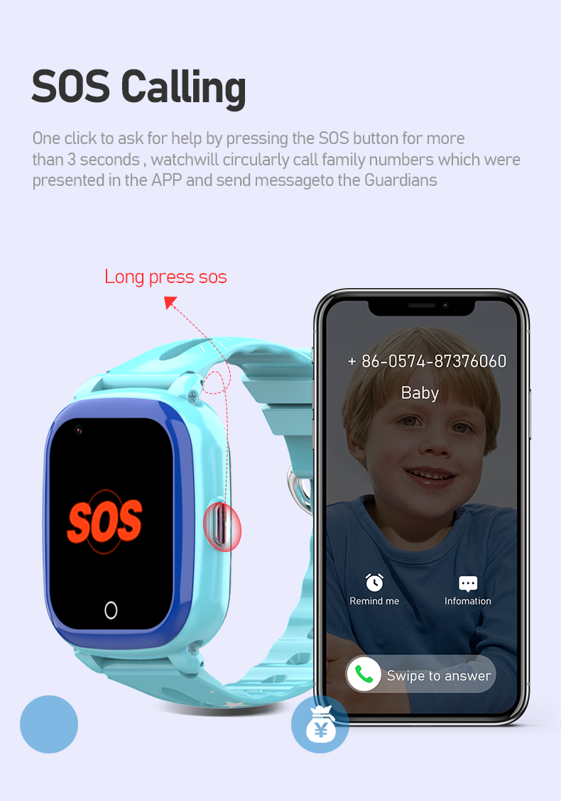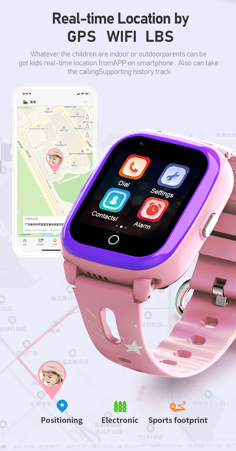 4G smart watch, Kids GPS SOS watch, SM/WiFi/LBS accurate positioning, Geofence, sos button..